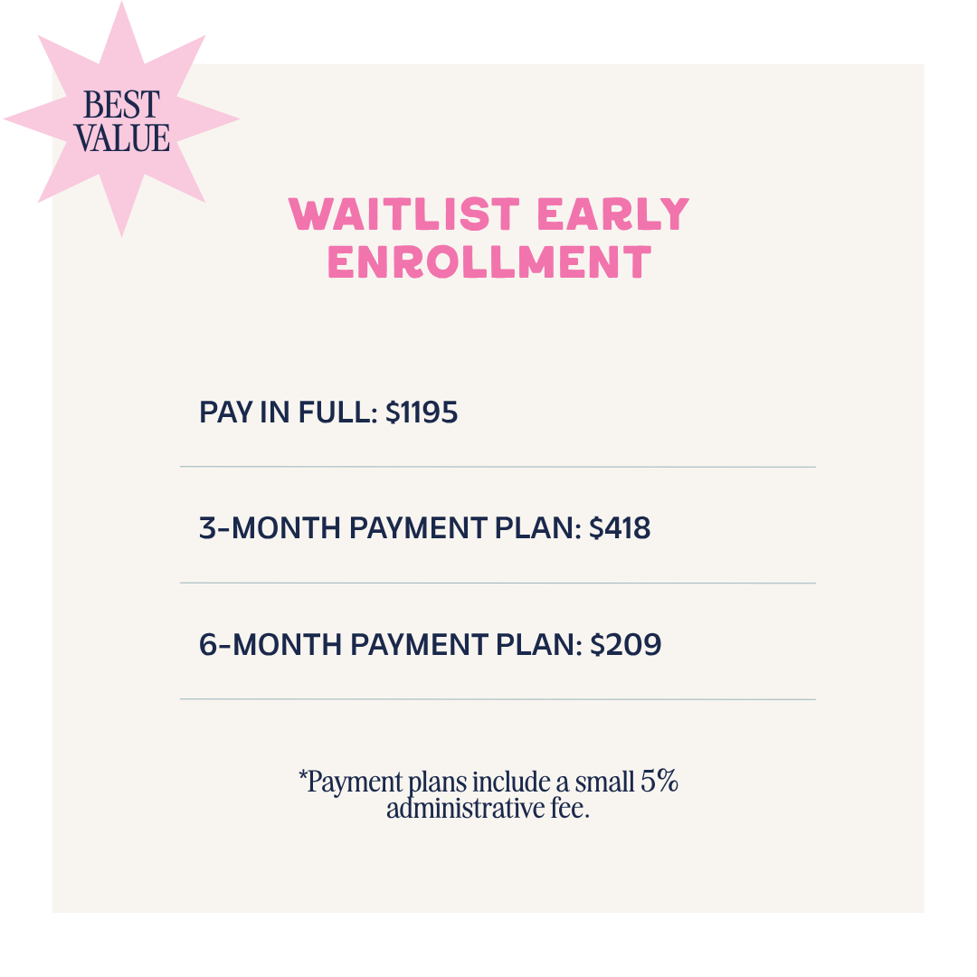Waitlist Enrollment is closed. Spring 2026 Cohort is now open to the public and will be standard pricing until doors close May 2nd.